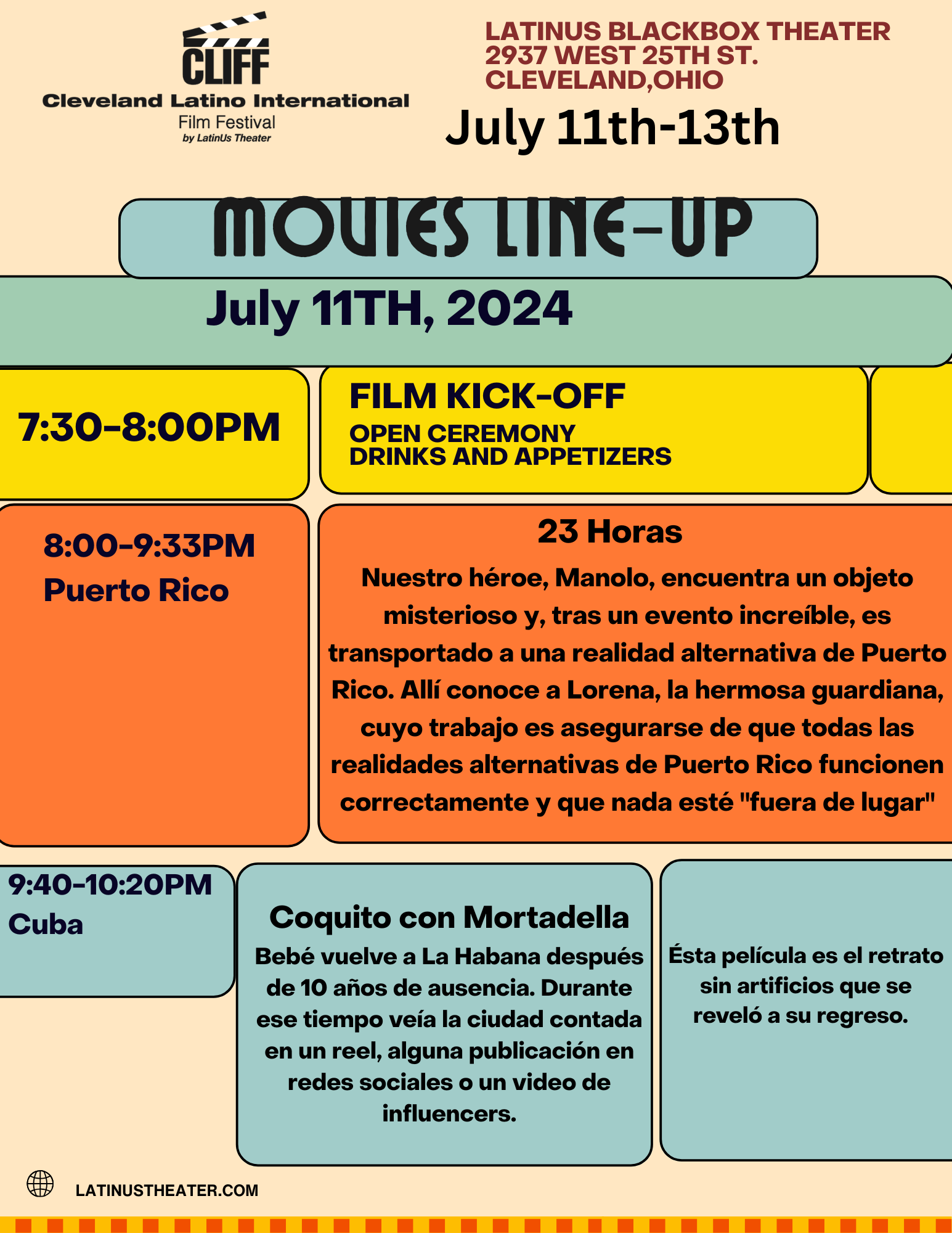 The **Latino International Film Festival by LatinUs** is a groundbreaking event celebrating the rich tapestry of Latino cinema from around the world. As the first-ever festival of its kind organized by LatinUs, it aims to showcase diverse voices, stories, and perspectives through a curated selection of films that highlight the Latino community's cultural, social, and artistic contributions. The festival will feature screenings, panel discussions, and special events, providing a unique platform for established and emerging filmmakers to connect with audiences and industry professionals. Join us in this historic celebration of Latino creativity and storytelling internationally.